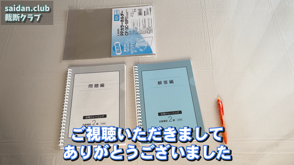 こちらはですね、表紙、この紙だけではですね、ちょっと弱いので、汚れ防止と強度を上げるためにですね、クリアフォルダはちょうどいいサイズにカットしたものをつけていきます。