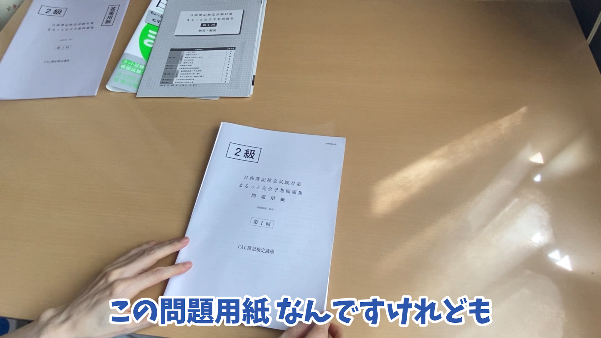 はいそれではですね予想問題集の解答解説に 穴をあけましてルーズリーフ化 しちゃいたいと思います