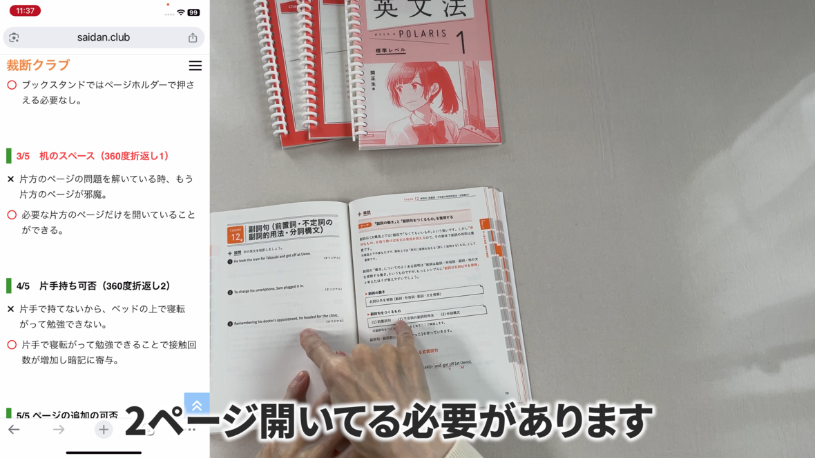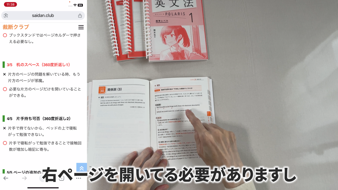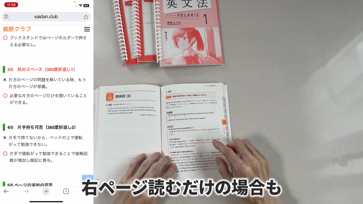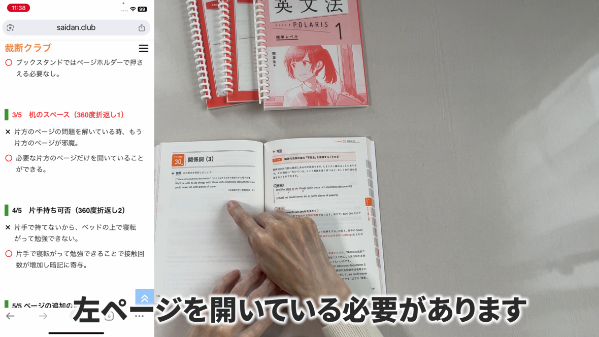 右ページを開いてる必要がありますし