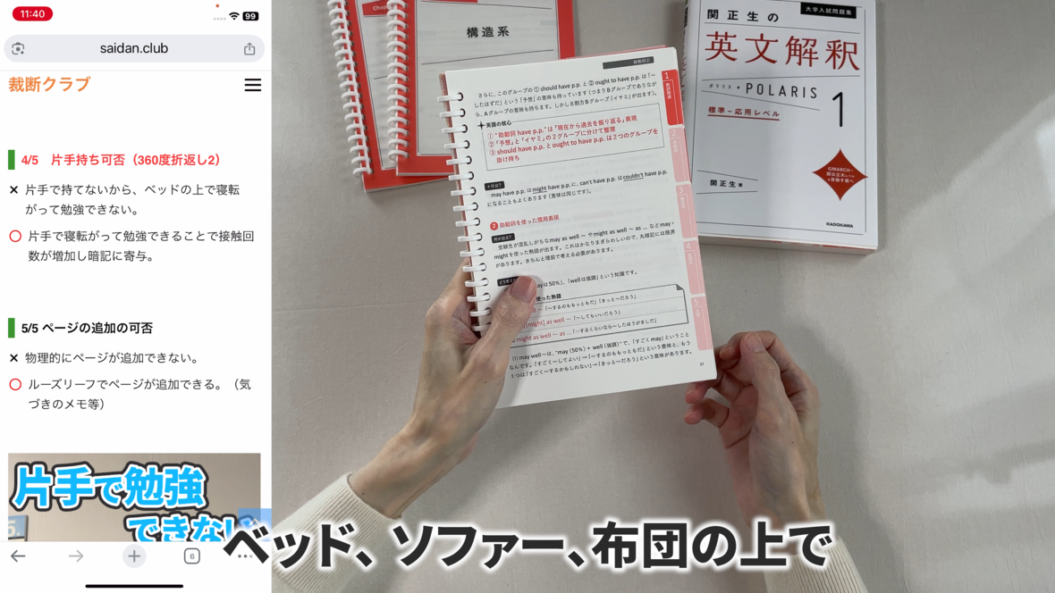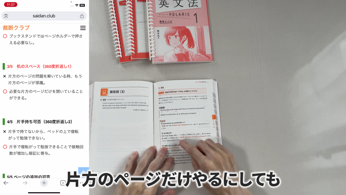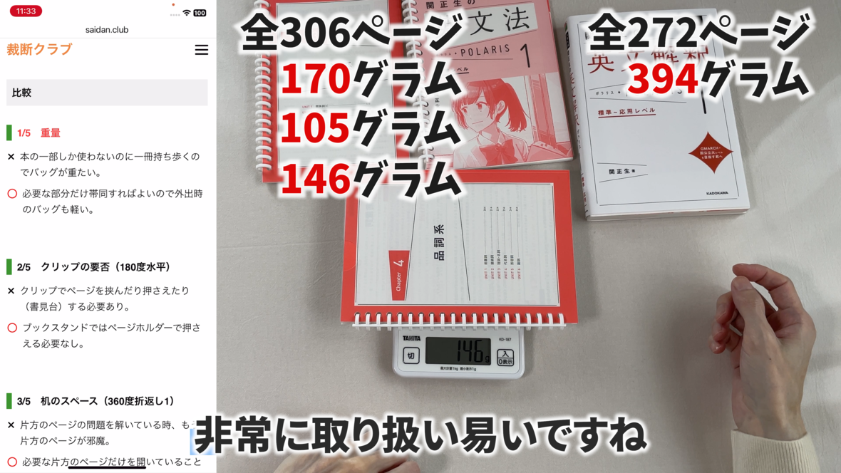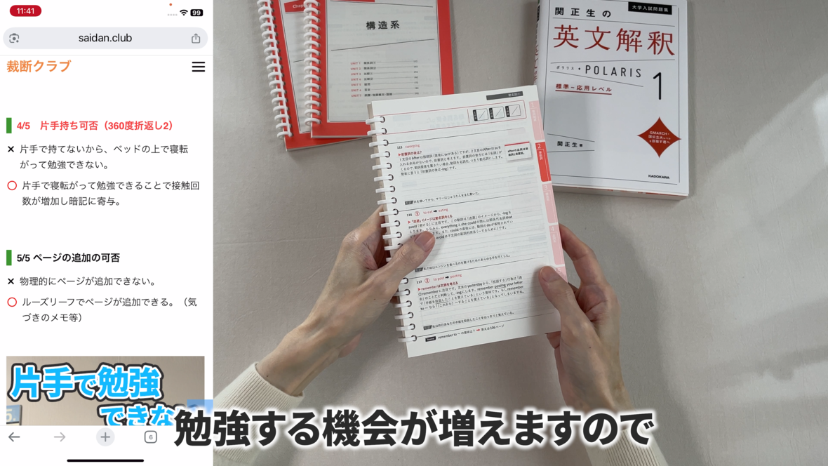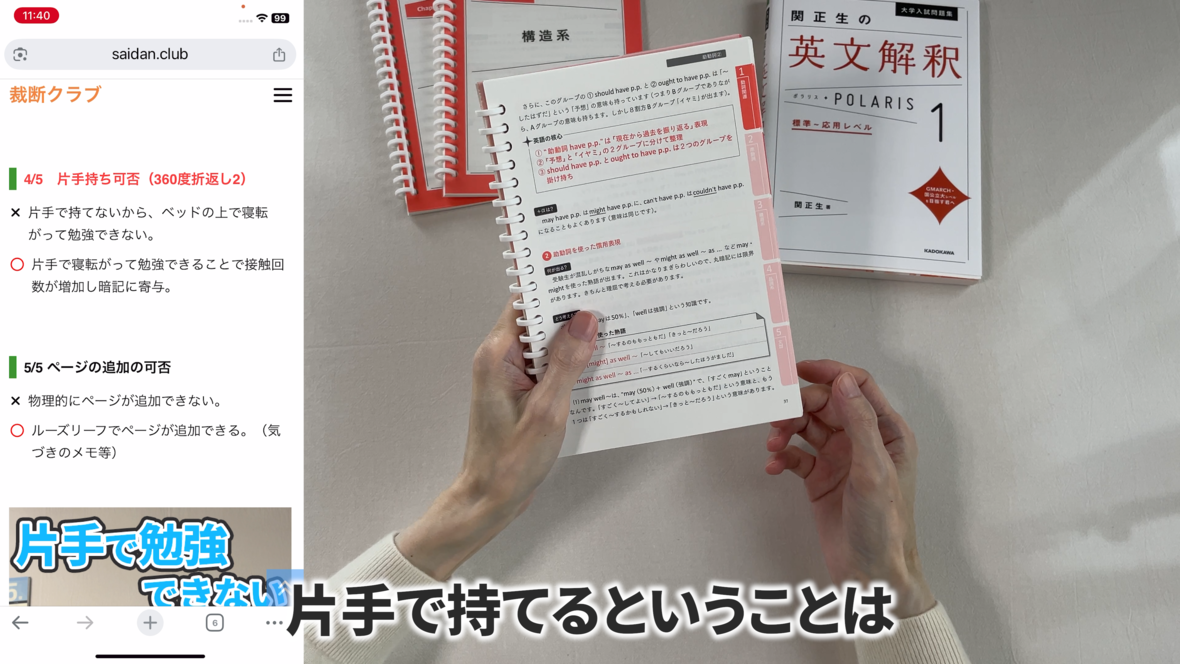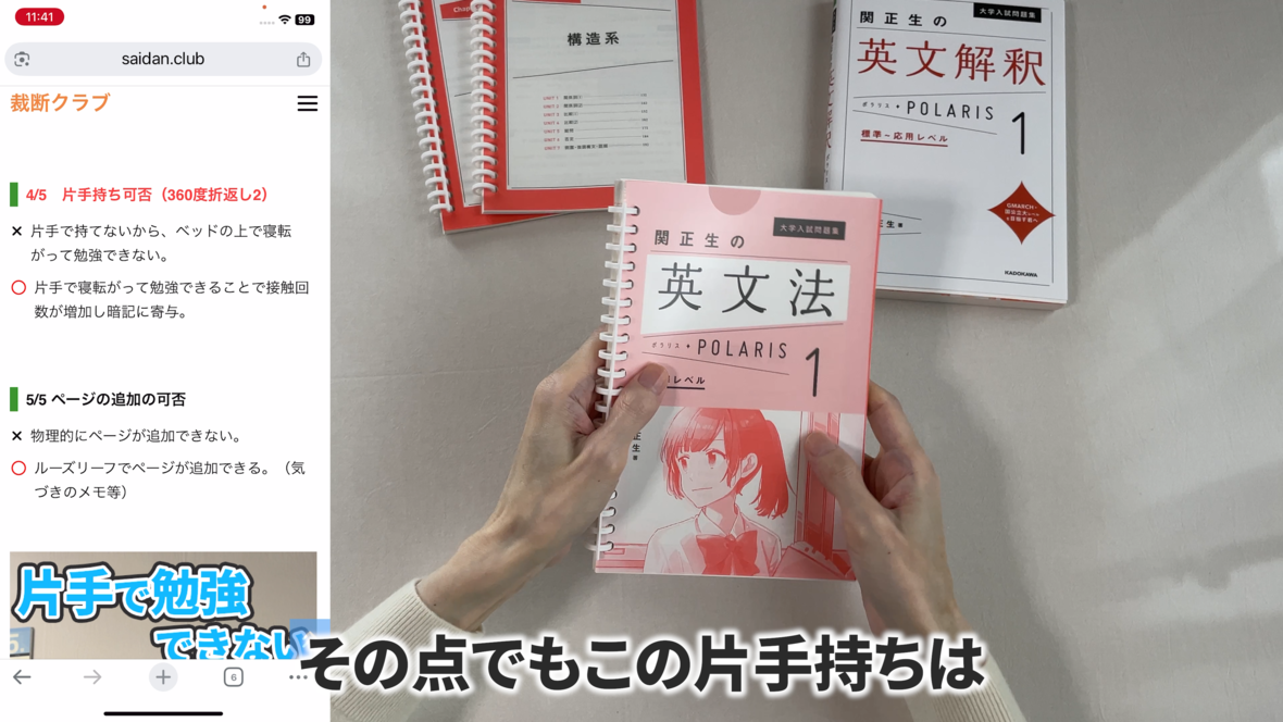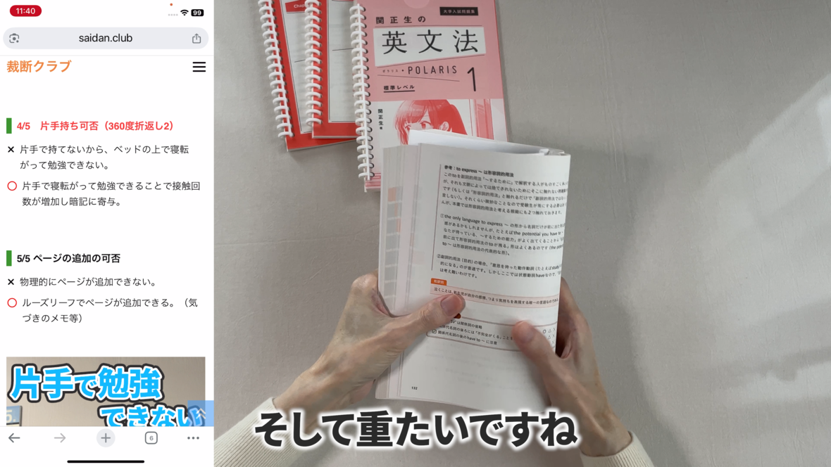 これは片手で持って勉強するのには適していません