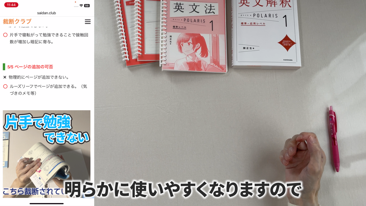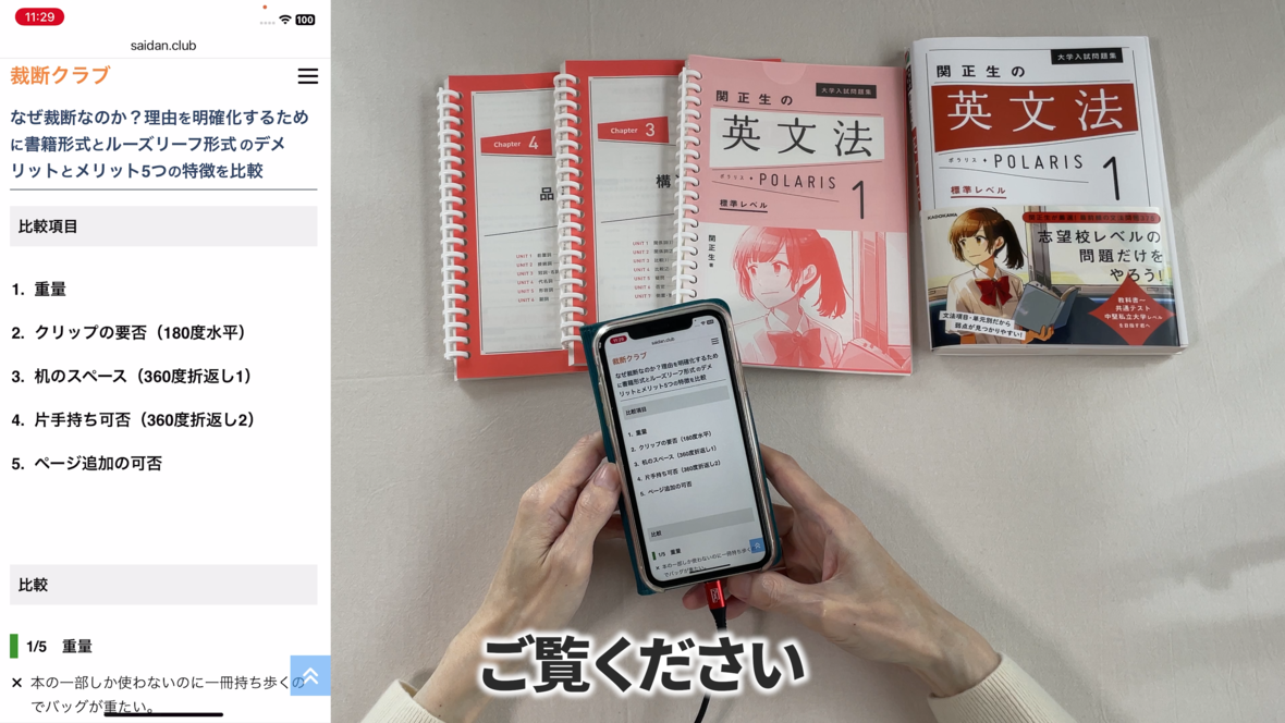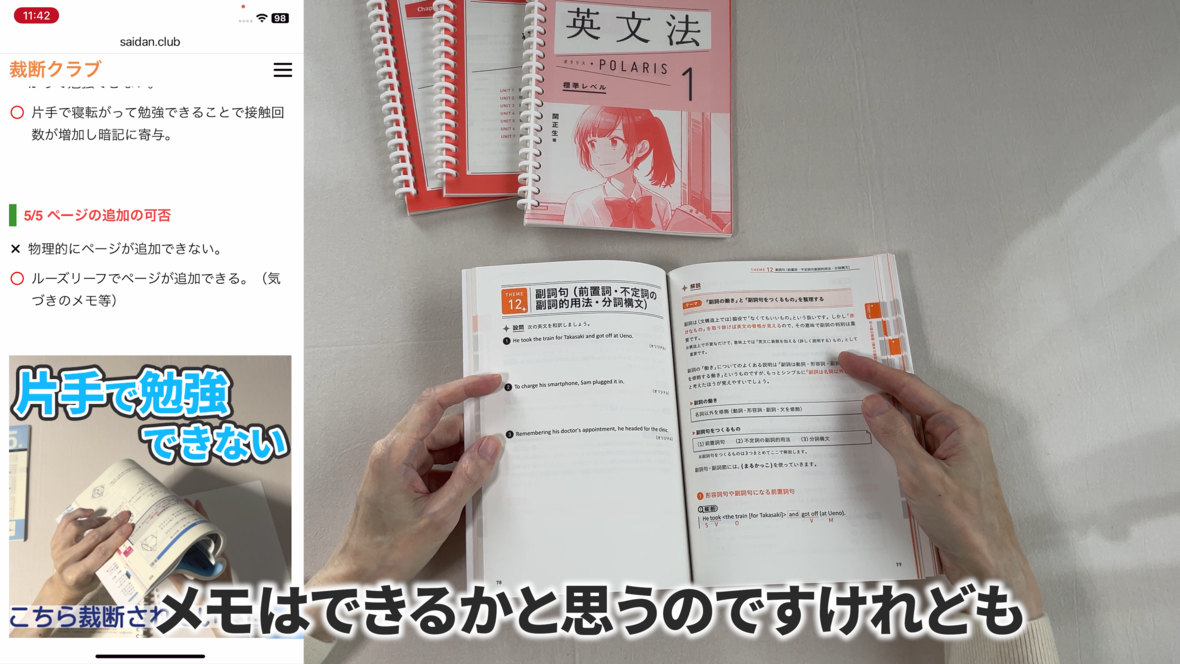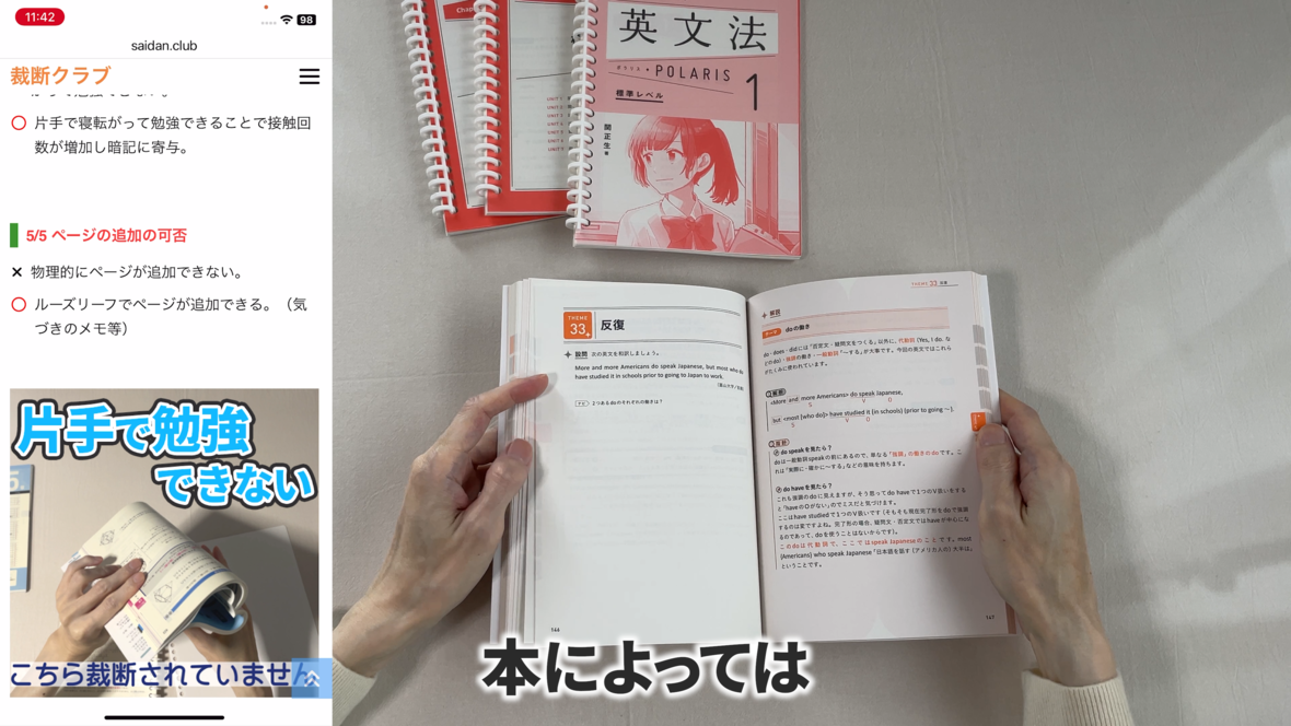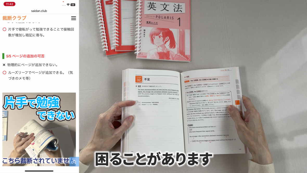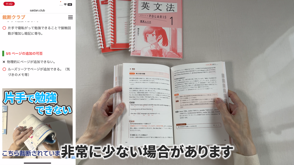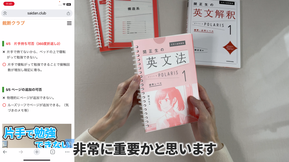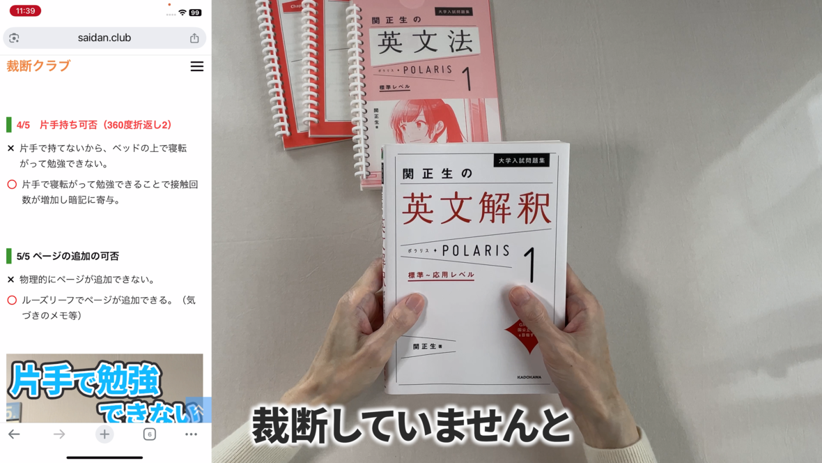 これは片手で持って勉強するのには適していません