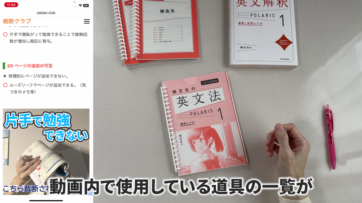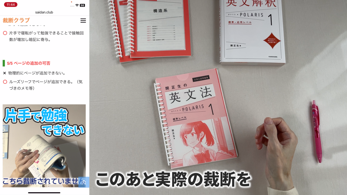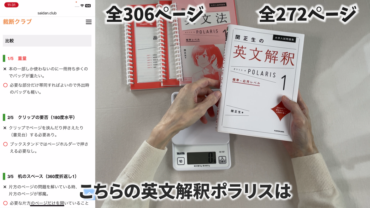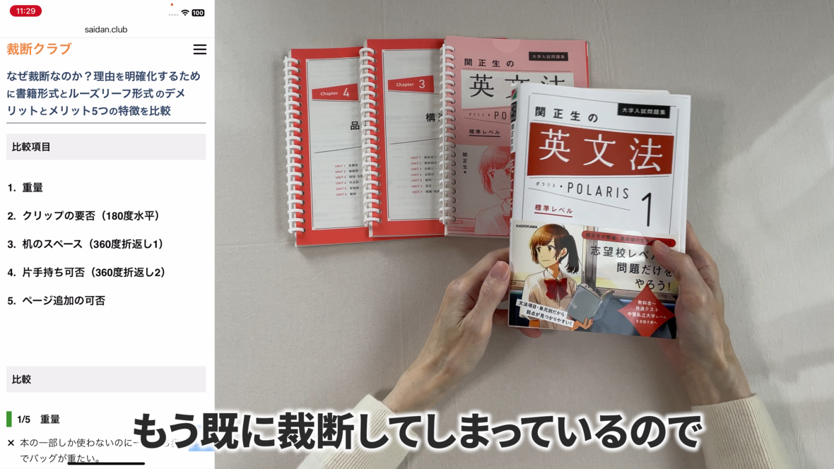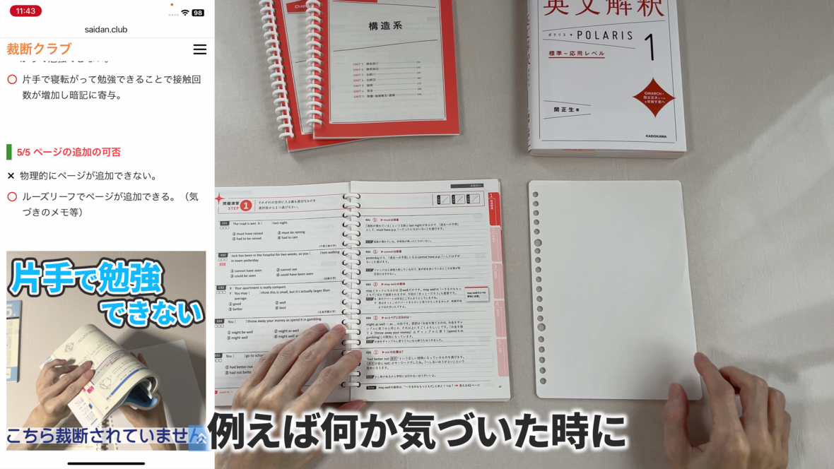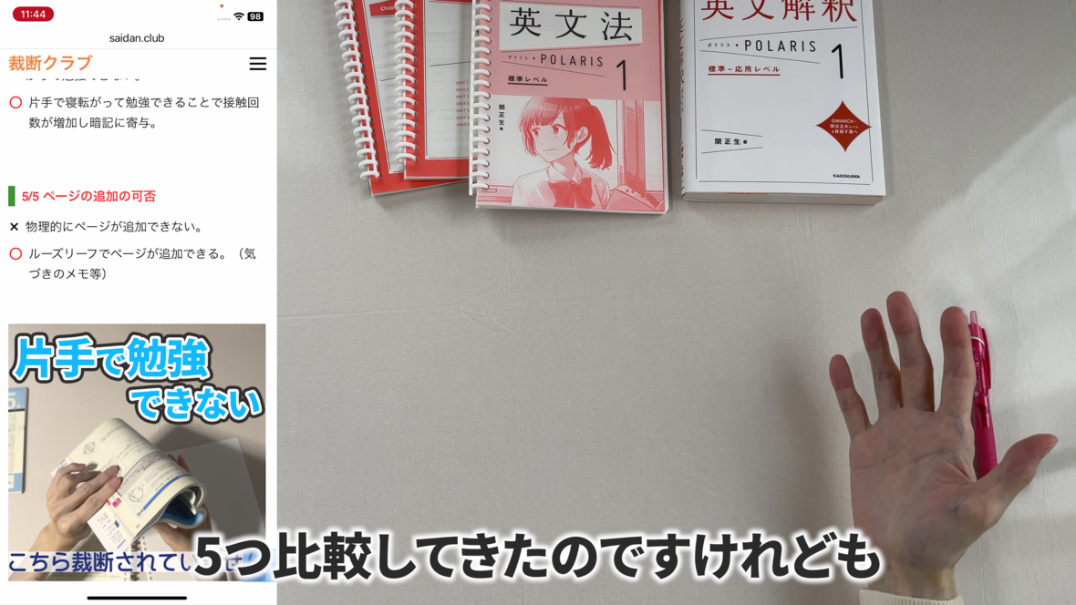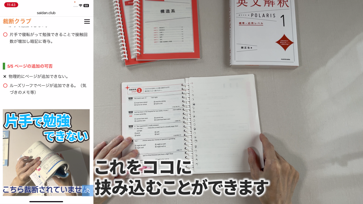 これは片手で持って勉強するのには適していません