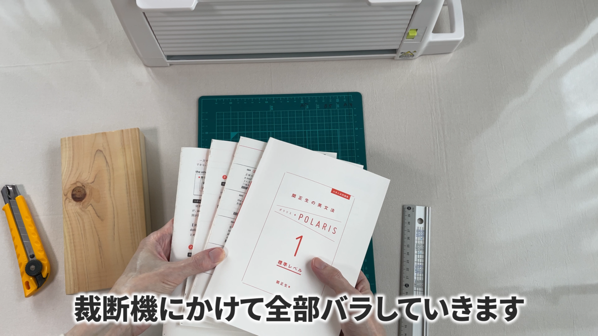 裁断機にかけて全部バラしていきます