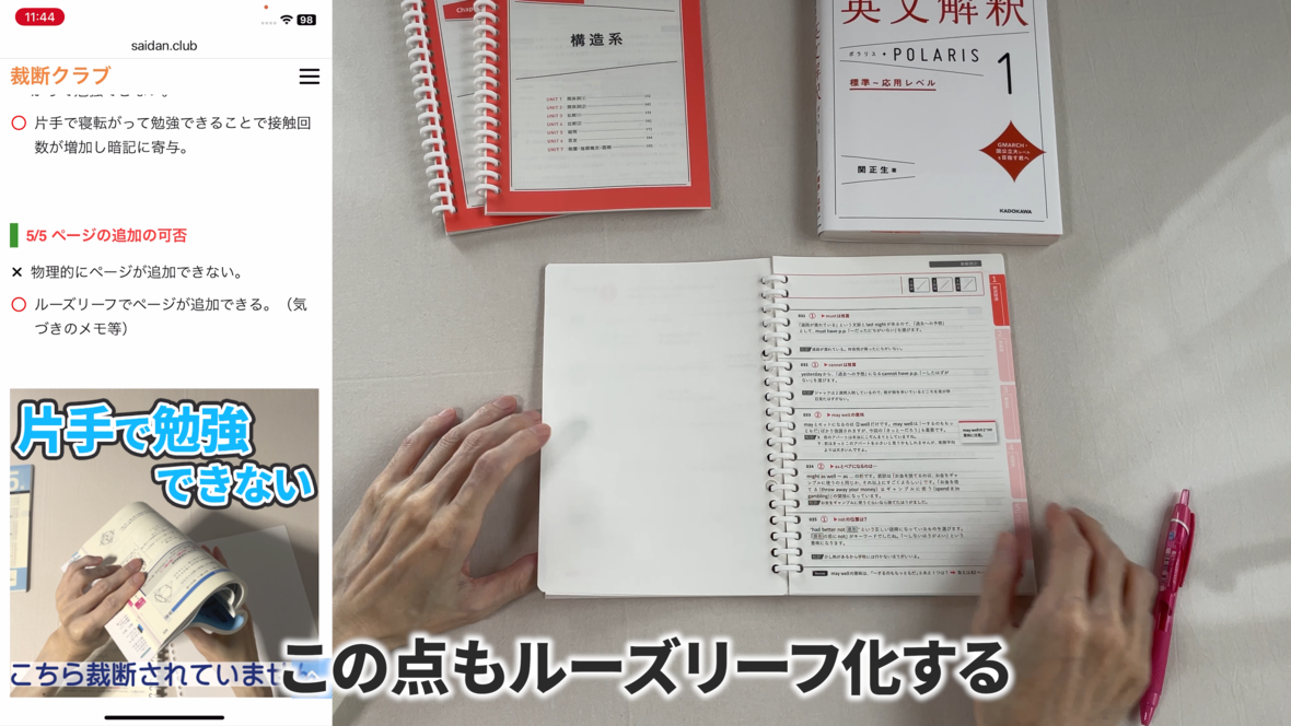 この点もルーズリーフ化の