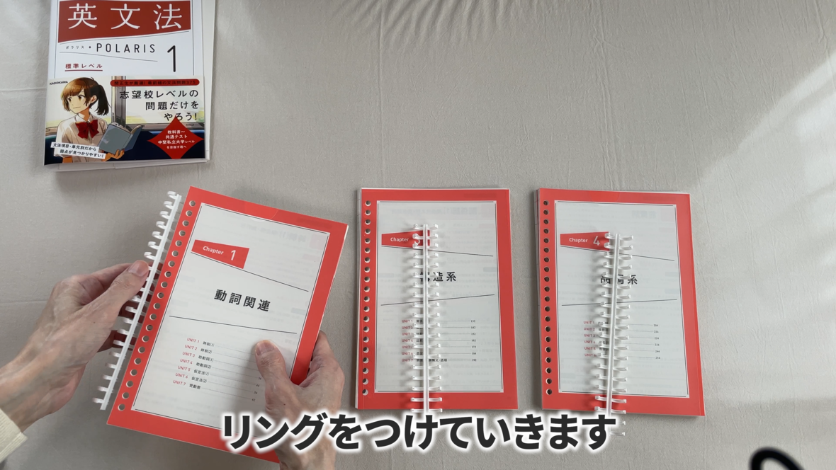 小さいリングで3冊に分けていきます
