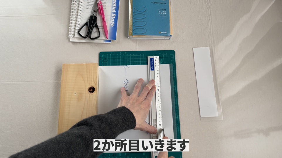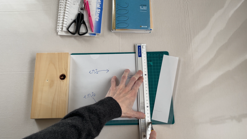 コレの大きさにカットしていきますのでこの紙を基準に下書きしていきます
