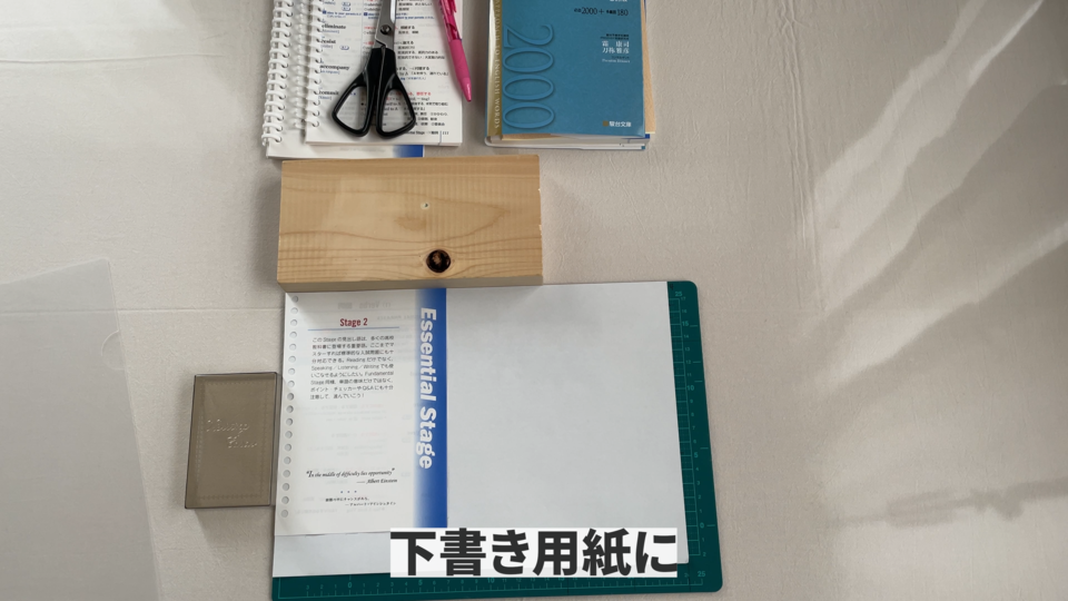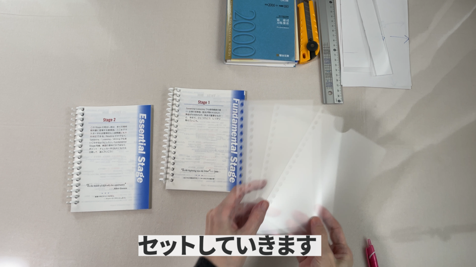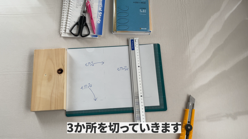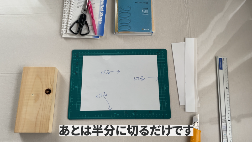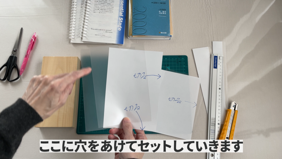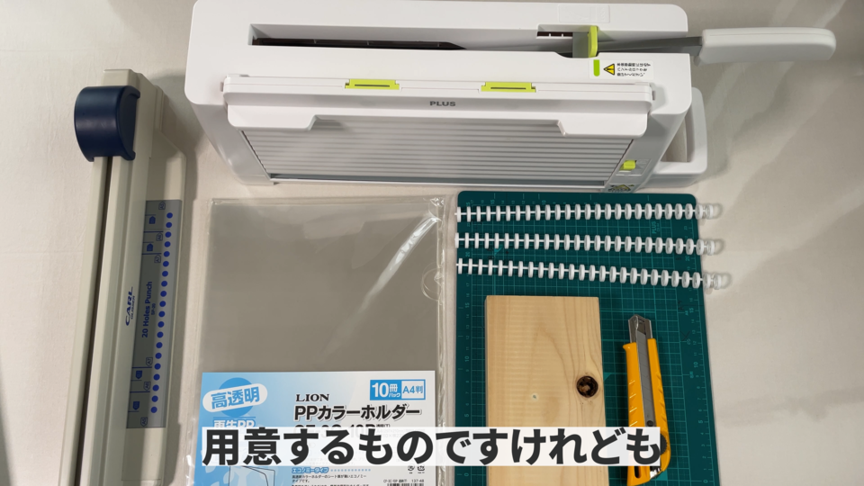 用意するものですけれどもカッターとカッターマットと手を保護する用の木と裁断機と穴あけ器とクリアホルダーとルーズリングです