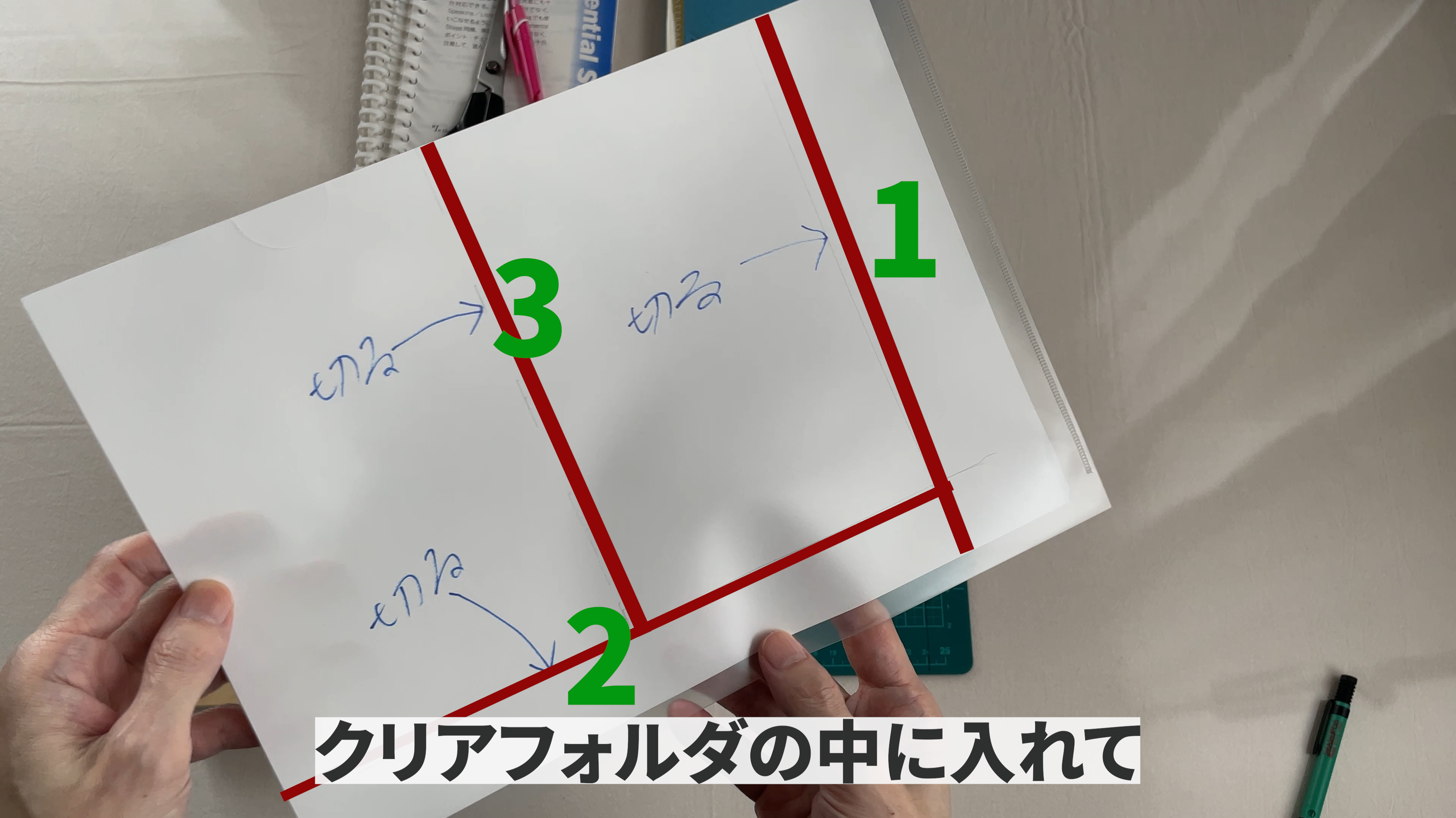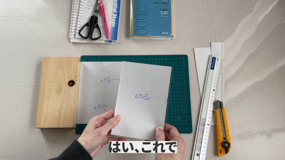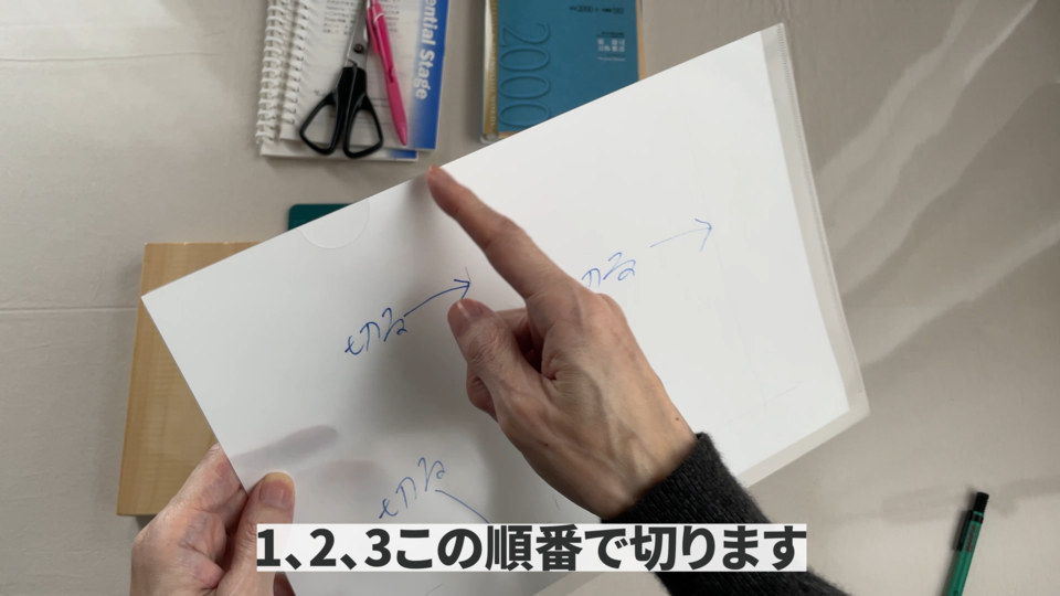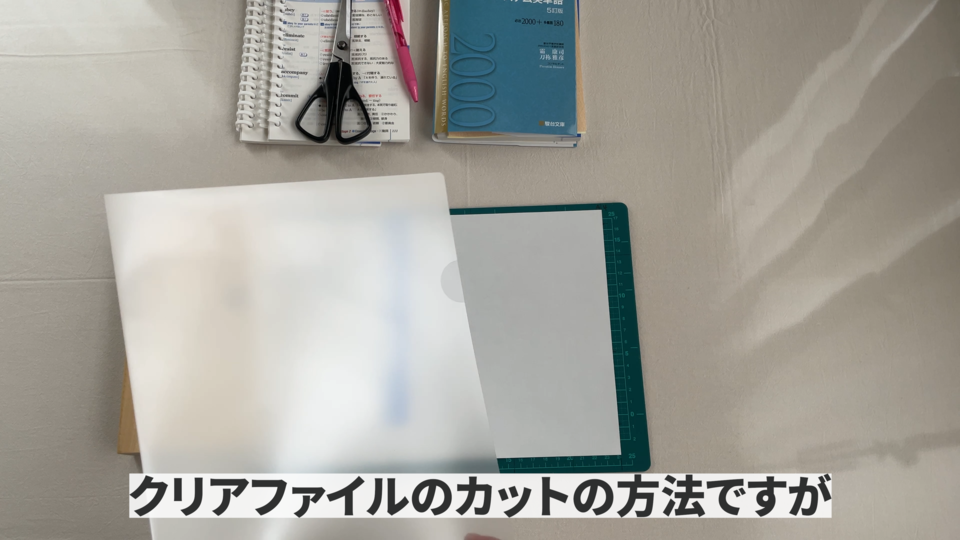 下書きが終わりましたらクリアフォルダの中に入れて3か所切るだけです