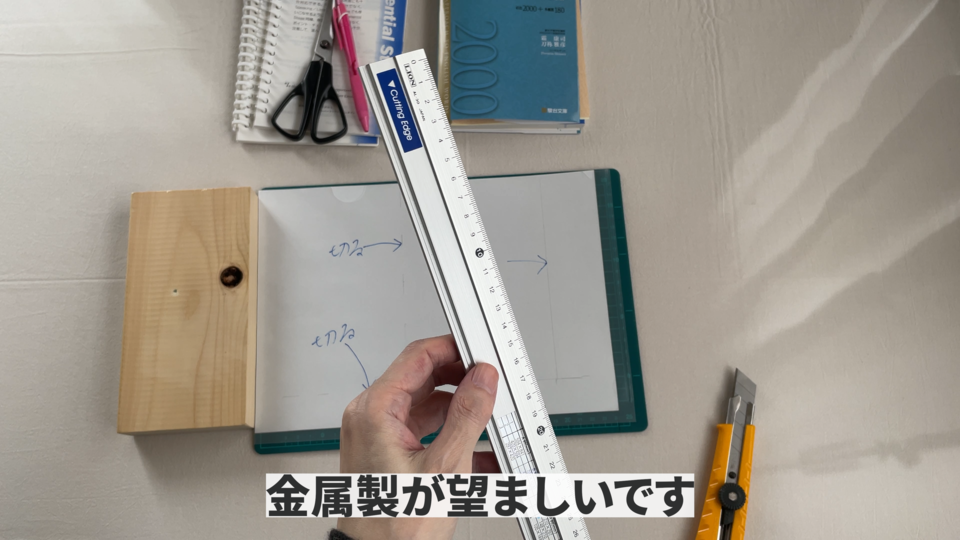 カットするときの定規は金属製が望ましいです