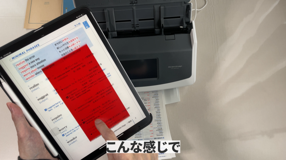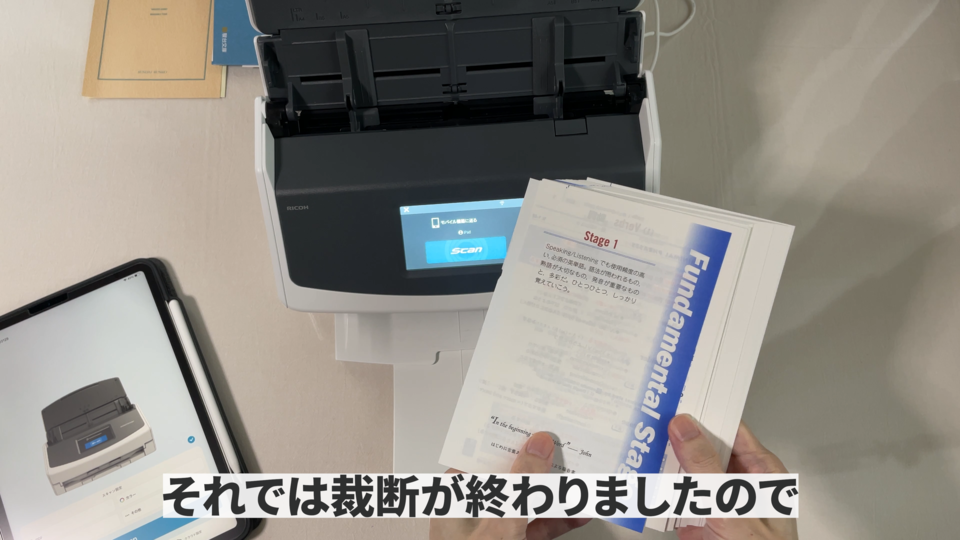 それでは裁断が終わりましたのでこの紙データをスキャナーでiPadにもデータを取り込んでいきたいと思います