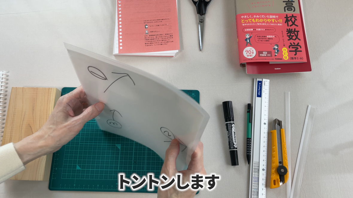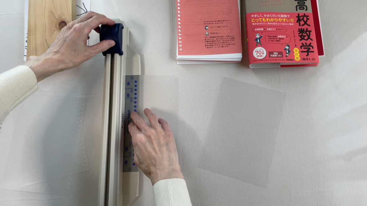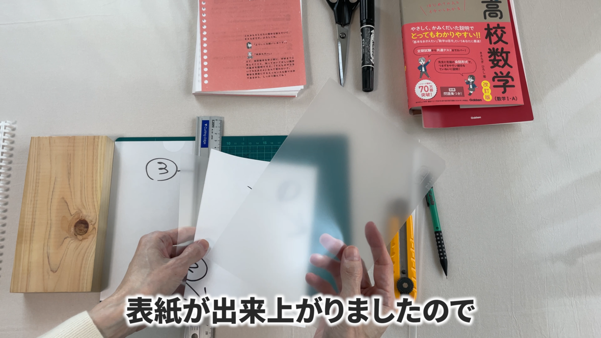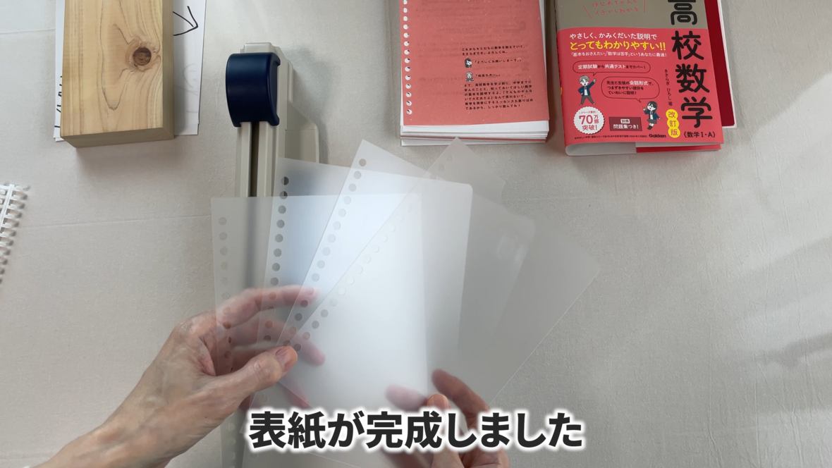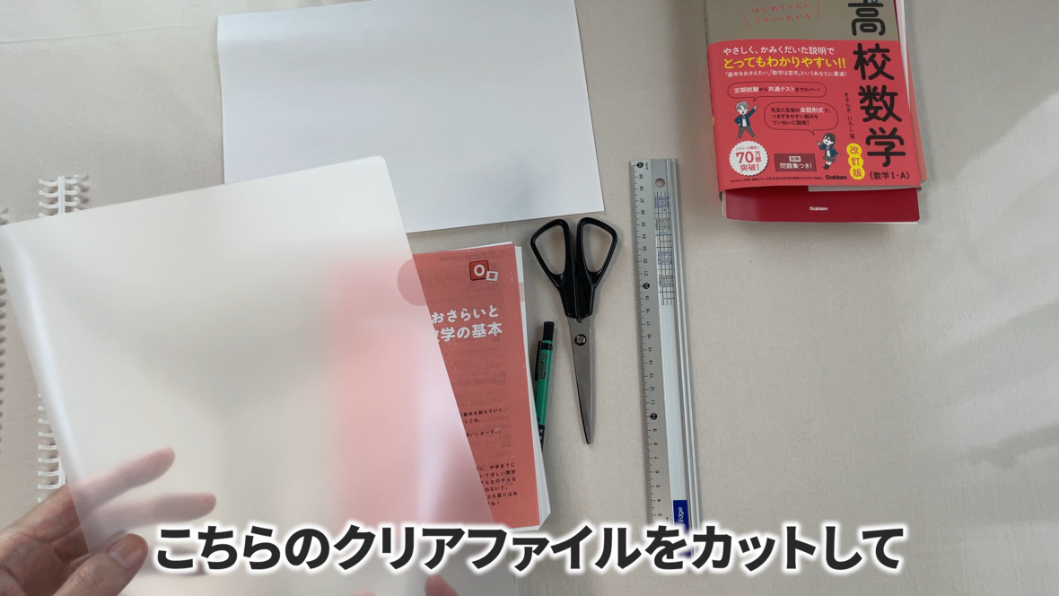 こちらのクリアファイルをカットして表紙と裏表紙を作っていきます