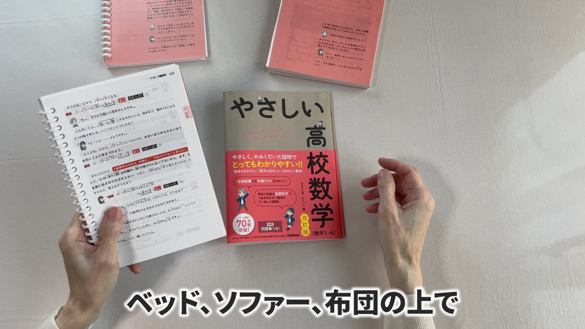 片手で持ってベッド、ソファー、布団の上で寝っ転がりながら 勉強することができます