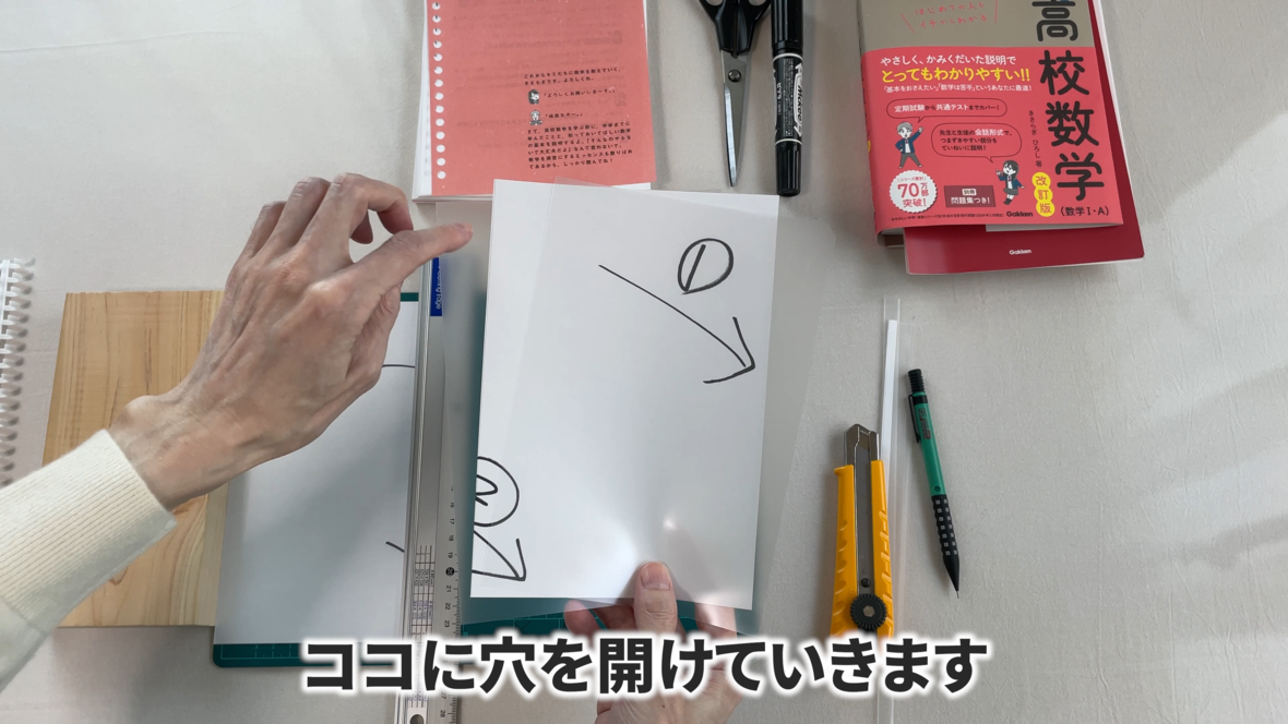 それでは裁断が終わりましたのでここに穴を開けていきます