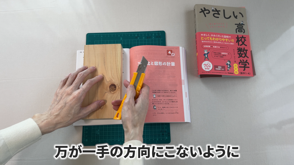 ポイントは本のだいたい真ん中からカッターの刃を入れていくことです