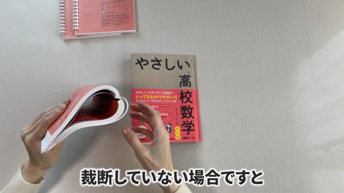 こんにちは裁断クラブです今日はこちらの 【やさしい高校数学】数学Ⅰ・Aこちらを裁断していきます